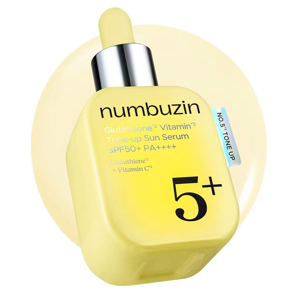 ضد آفتاب تون آپ گلوتاتیون و ویتامین سی شماره 5 نامبوزین ضد لک و روشن کننده قوی پوست Numbuzin No.5 Glutathione Vitamin C Tone-up Sun Serum